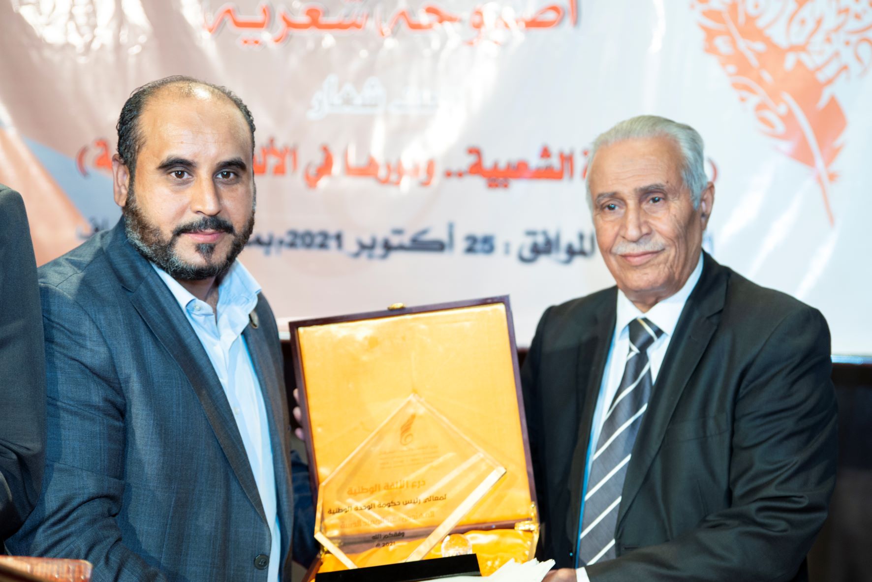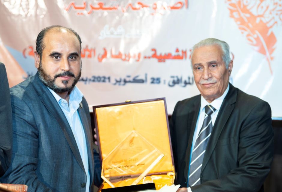 وفي نهاية الأصبوحة قدّم الشعراء المشاركين درع الشعراء الشعبيين لكل من معالي وزيرة الثقافة والتنمية المعرفية ورئيس الوزراء بحكومة الوحدة الوطنية كما طالبوا بإقامة مهرجان للشعر الشعبي تتبناه وزارة الثقافة والتنمية المعرفية بمشاركة جميع شعراء ليبيا.
