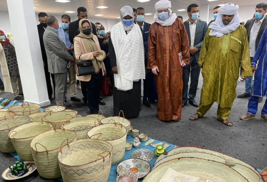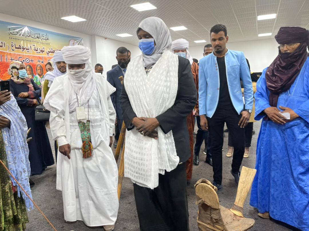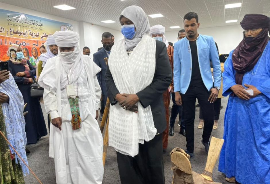افتتحت معالي الأستاذة مبروكة توغي عثمان وزيرة الثقافة والتنمية المعرفية بحكومة الوحدة الوطنية، المعارض المصاحبة لاحتفالية اليوم الوطني لهوية ايموهاغ الطوارق، صباح اليوم الأحد 21 مارس 2021، بقاعة المعارض بلد الطيوب بديوان الوزارة تحت شعار ” رسالة من عمق الصحراء”، وذلك لإبراز