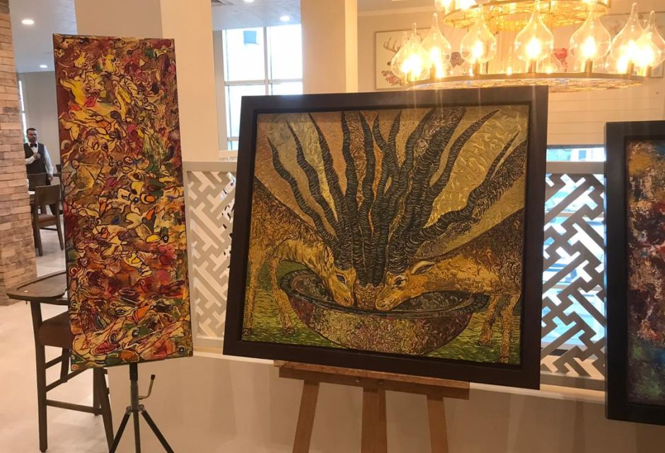 ويضم المعرض نحو 20 عملا فنيا مختلفا للفنانين المتميزين، مريم بازينة، ومحمد الخروبي، وأحمد البارودي