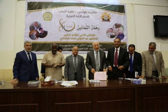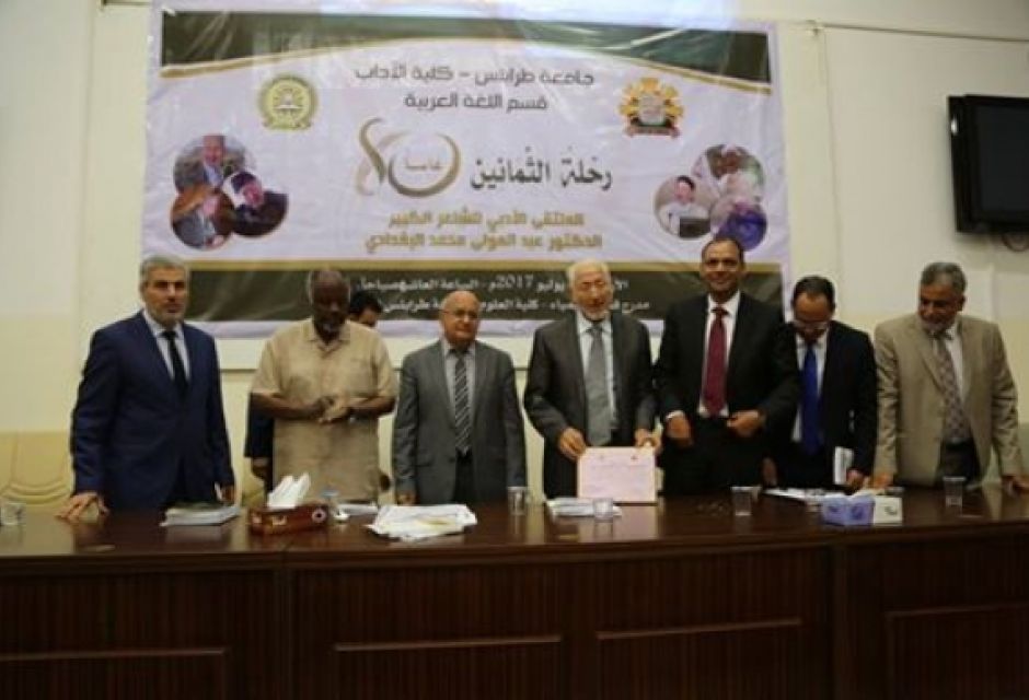 نظم قسم اللغة العربية في جامعة طرابلس، يوم الأربعاء26 يوليو2017، الملتقى الأدبي حول نتاج الشاعر الدكتور عبدالمولى البغدادي، بمدرج قسم الكيمياء بكلية العلوم طرابلس، تحت عنوان “رحلة الثمانين”، اعترافا بمساهمته ونبوغه الكبير في الشعر.