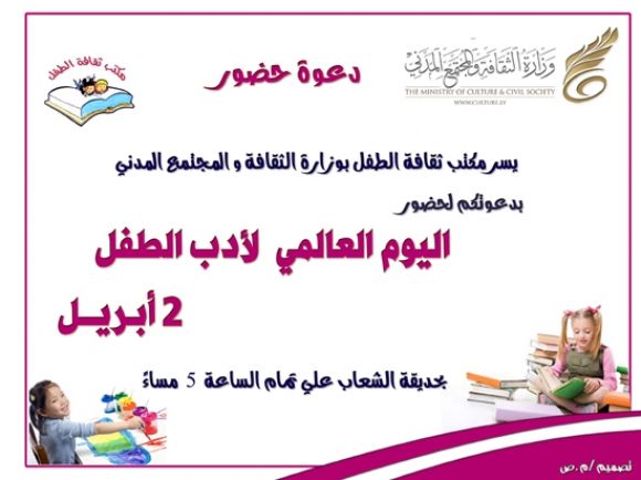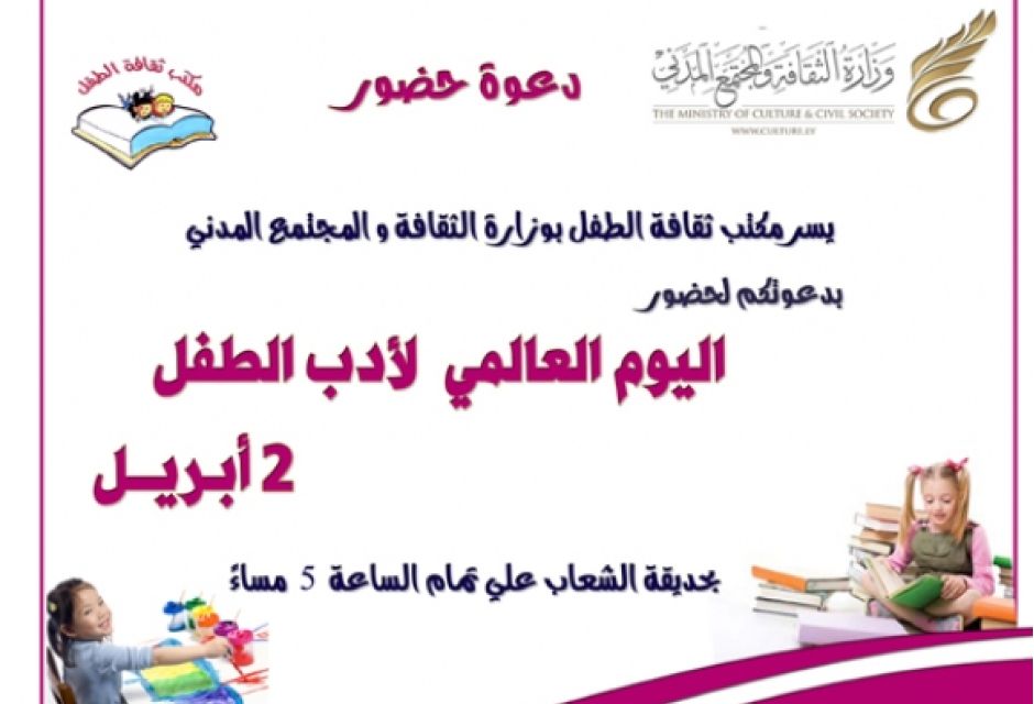 دعوة لكل الأطفال بمناسبة اليوم العالمي لأدب الطفل