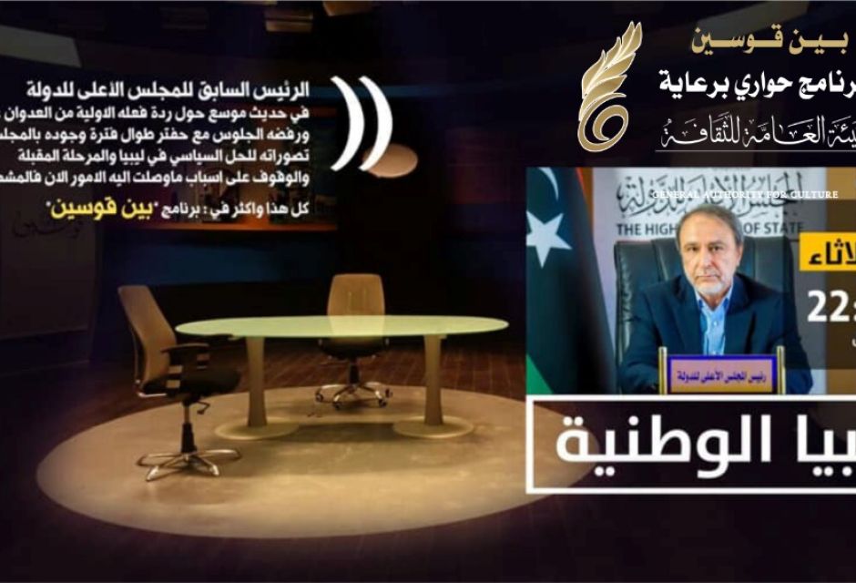 يستضيف برنامج بين قوسين برعاية الهيئة العامة للثقافة والذي يبثّ على قناة ليبيا الفضائية مساء اليوم الرئيس السابق للمجلس الأعلى للدولة الدكتورعبدالرحمن السويحلي للحديث حول آخر تطورات العدوان على طرابلس وتداعياته.
