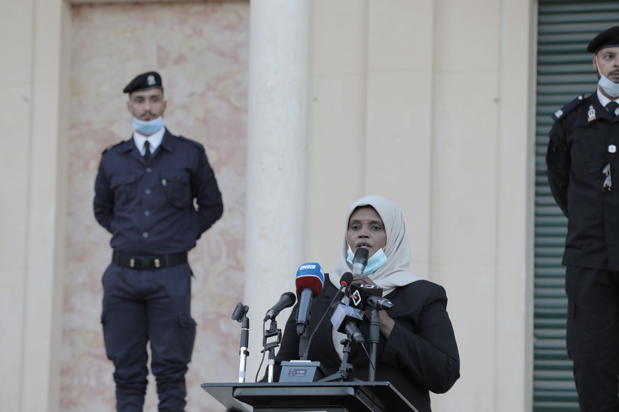 وألقت الأستاذة مبروكة توغي عثمان وزيرة الثقافة والتنمية المعرفية كلمة بالمناسبة، قدمت فيها التهنئة لرئيس وأعضاء المجلس البلدي المنتخب، متمنية لهم التوفيق في خدمة المدينة، مؤكدةً أن وزارة الثقافة ستكون دائماً داعماً لكل عمل يعزز العمل الثقافي ويساهم في تشجيع التنمية المعرفية.