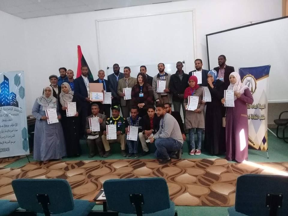 تحت شعار الإعلام برؤية مهنية، وبرعاية مكتب الثقافة غدامس ،بالتعاون مع منظمة سفراء الصحافة والأعلام موسم المدينة الإعلامي، أختتمت مساء يوم الأربعاء 19 ديسمبر 2018، بمكتب الثقافة غدامس الورشة التدريبية الخاصة بتكوين كوادر إعلامية متميزة وناجحة بعنوان ” بوابتك لإحتراف الأعلام “، بمشاركة 22 متدرب ومتدربة من مختلف مناطق غدامس وبإشراف رئيس موسم المدينة الإعلامي ومنظمة سفراء الصحافة والإعلام الدكتورة لبنى يونس .