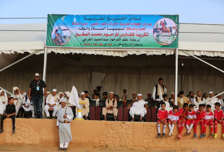 انطلقت أمس الخميس 24 أكتوبر 2019 بمدينة العجيلات، فعاليات الدورة الثالثة لمهرجان الفروسية والتراث الشعبي، “دورة الفارس الراحل محمد الصغير”، المنظمة تحت شعار ” ليبيا السلام والوفاء “.