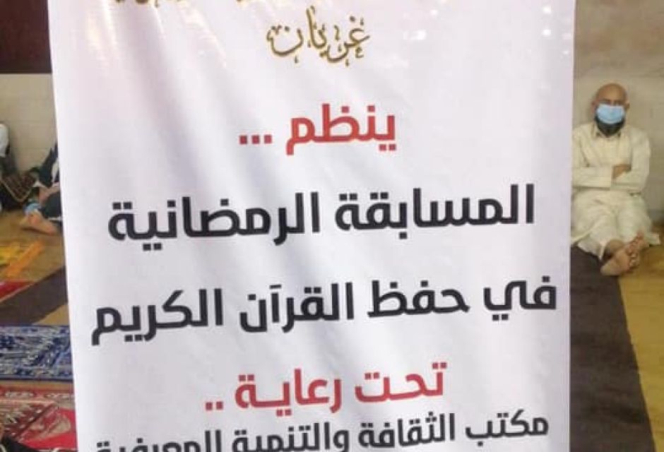 تشهد مدينة غريان في الليالي العشر الأواخر من شهر رمضان المبارك مسابقة كبيرة في حفظ القرآن الكريم ، ينظمها مكتب الثقافة والتنمية المعرفية بالتعاون مع الهيئة العامة للأوقاف والشؤون الإسلامية بالمدينة، لعدد 20 طالب متسابق من الحفظة شملت المسابقة حفظ الربع والنصف وكامل المصحف الشريف .