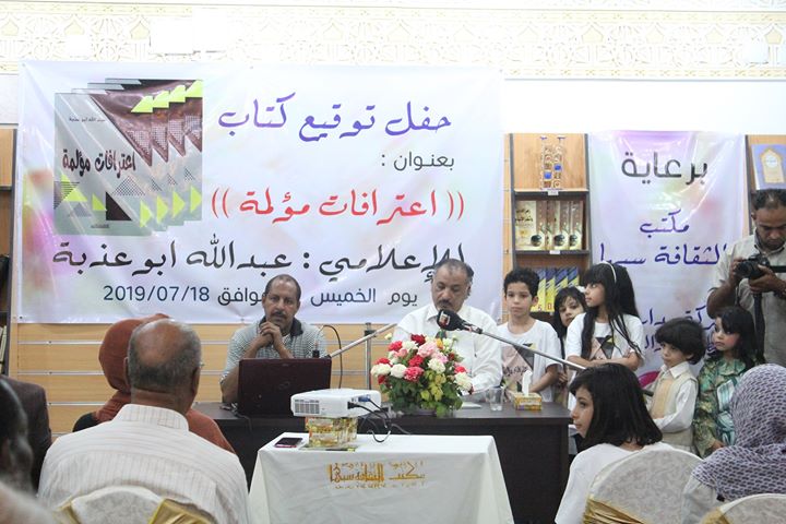 أقيم يوم الخميس 18 يوليو209، في بيت الثقافة في سبها حفل توقيع كتاب ” اعترافات مؤلمة ” لمؤلفه عبدالله أبوعذبة ، والصادر حديثاً عن الهيئة العامة للثقافة، بحضور مديرة بيت الثقافة سبها السيدة حميدة لملوم، وعدد من المهتمين بالشأن الثقافي، والإعلاميين.