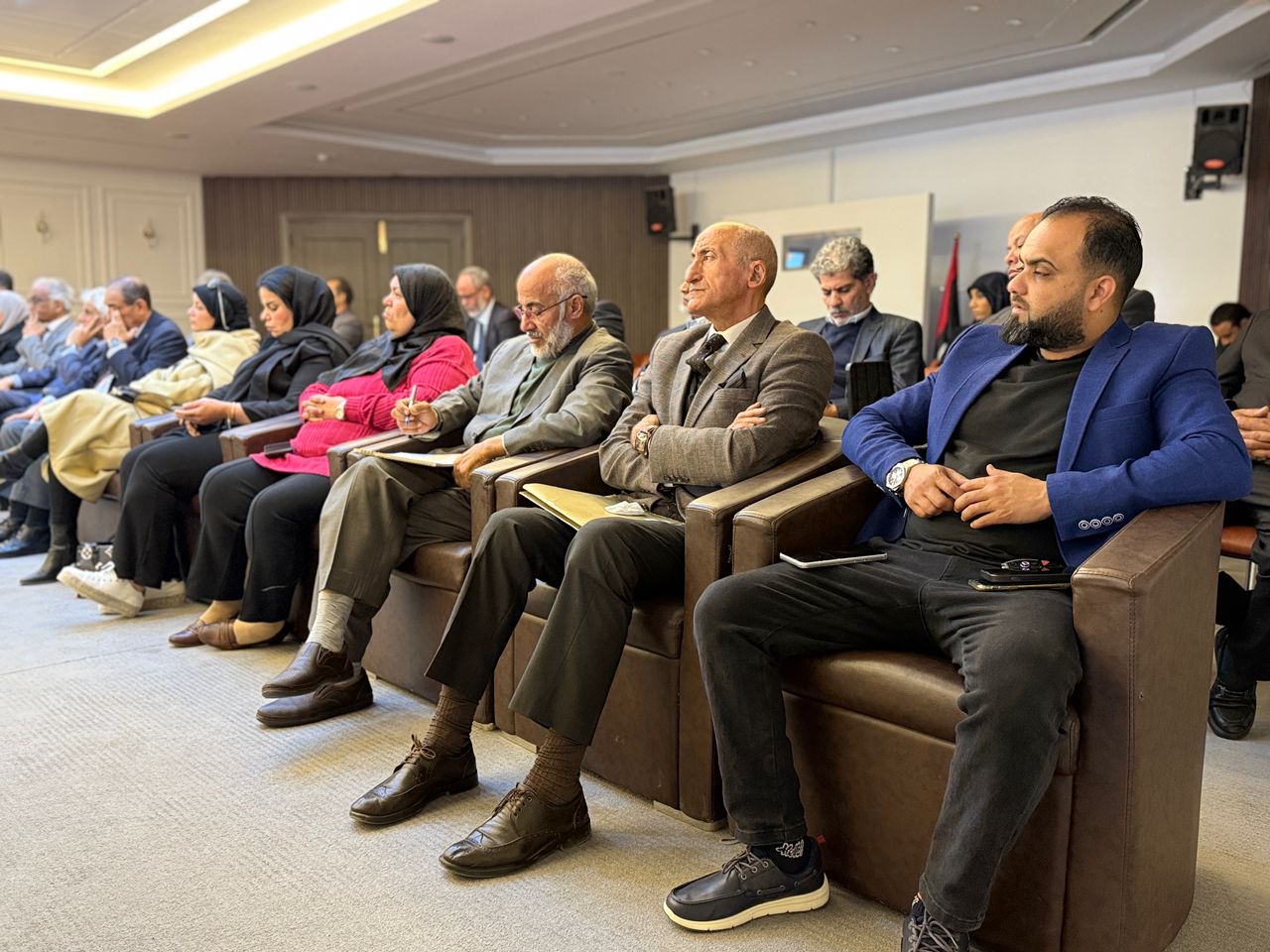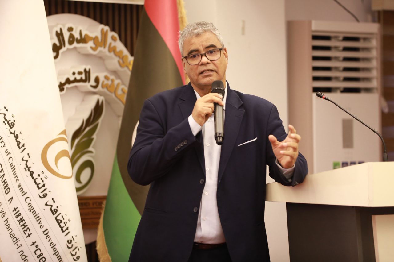 عقدت وزارة الثقافة والتنمية المعرفية اليوم الأربعاء 18 فبراير 2026، حوارًا مفتوحًا في قاعة محمود اللبلاب بديوان الوزارة، بحضور معالي وزيرة الثقافة والتنمية المعرفية، الأستاذة مبروكة توغي، بالإضافة إلى الوزير المفوض ومدير إدارة الثقافة بالمنظمة العربية للتربية والثقافة والعلوم ، الدكتور عبد الحميد النوفلي، ومستشار المدير العام للمنظمة الدكتور احمد حبيبي ، إلى جانب نخبة من الفنانين والمثقفين، بينهم نقيب فناني ليبيا المكلف الأستاذ محمد النمر، والفنان القدير سعد الجازوي، وعدد من مديري الإدارات والجهات التابعة للوزارة.