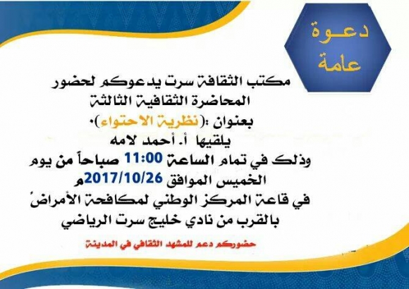 دعوة عامة لحضور محاضرة للأستاذ أحمد لامه بسرت