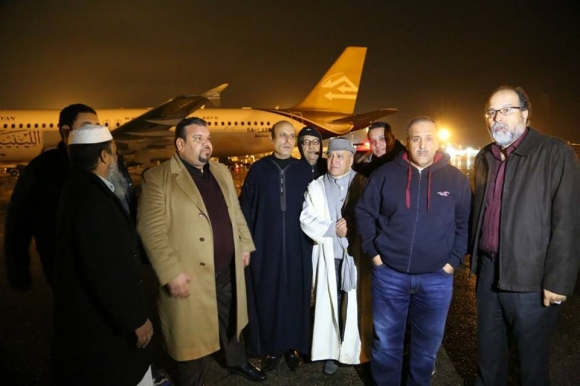 رئيس اللجنة التسييرية الأستاذ حسن اونيس جثمان فقيد الوطن الفنان محمد حسن وكانوا برفقة ذويه أمام الطائرة التي نقلت الفقيد من مطار قرطاج تونس إلى مطار معيتيقة بطرابلس هذا وستقام مراسم الجنازة غدا ليوارى جثمانه وطن تغنى بحبه لسنوات .. رحم الله محمد حسن .