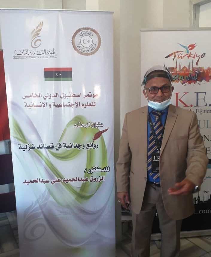 اختتم المؤتمر الدولي الخامس للعلوم الإنسانية والاجتماعية، الذي نظمته جامعة تكريت بالتعاون مع مؤسسة كوبرو التعليمية التركية، والذي عقد في مدينة اسطنبول، تحت عنوان ” تكامل الفكرة وواقع التطبيق “، شارك الدكتور الزروق عبدالحميد علي عبد الحميد الأستاذ بكلية التربية جامعة مصراتة، في جلسات المؤتمر ببحث علمي تحت عنوان، ( ” روائع وجدانية في قصائد غزلية “، مختارات من شعر علي الفيتوري ارحومة).