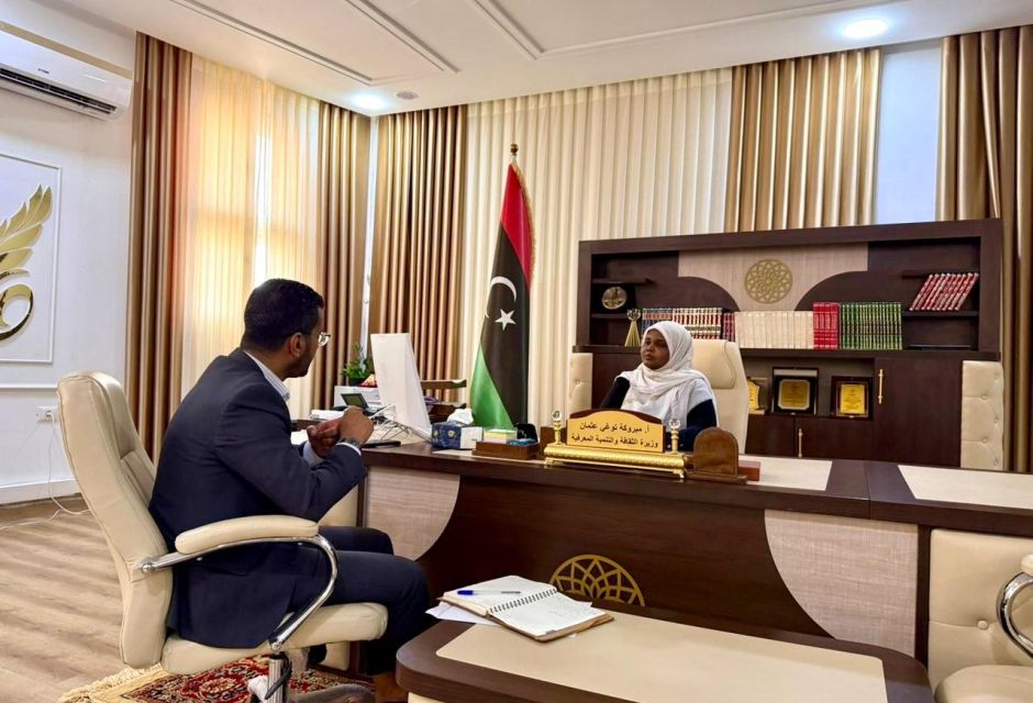 عقدت معالي وزير الثقافة والتنمية المعرفية الأستاذة مبروكة توغي صباح اليوم الثلاثاء 15 يوليو لقاء مع مدير عام المركز الليبي للثقافات المحلية، السيد أكرم الكاتب، حيث جرى خلال اللقاء مناقشة شاملة لأبرز التحديات والمشكلات التي تواجه المركز في أداء مهامه، إضافة إلى استعراض سياسات العمل والخطط المستقبلية لتعزيز نشاط المركز في مجال الثقافة المحلية.
