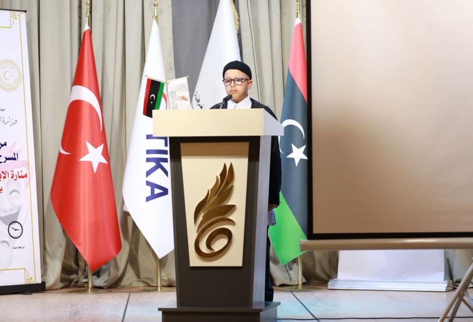 تلا ذلك تلاوة آيات من القرآن الكريم بصوت القارئ الطفل أحمد مصطفى نصر أعقبها عزف للنشيد الوطني الليبي من أداء أطفال مدرسة فيجن الدولية، والنشيد التركي.