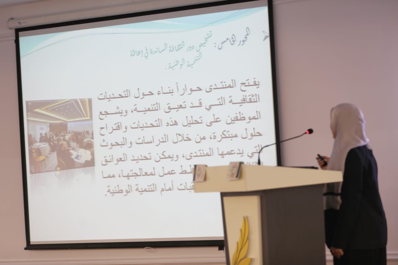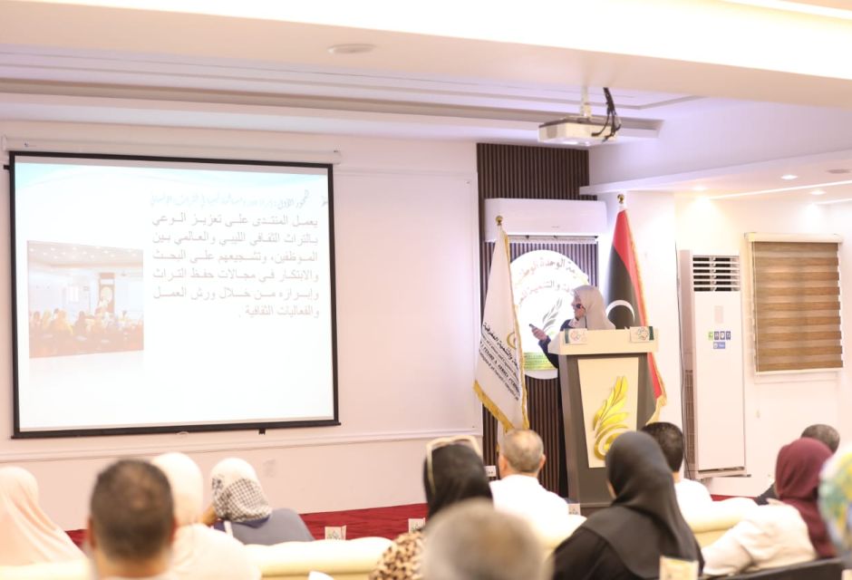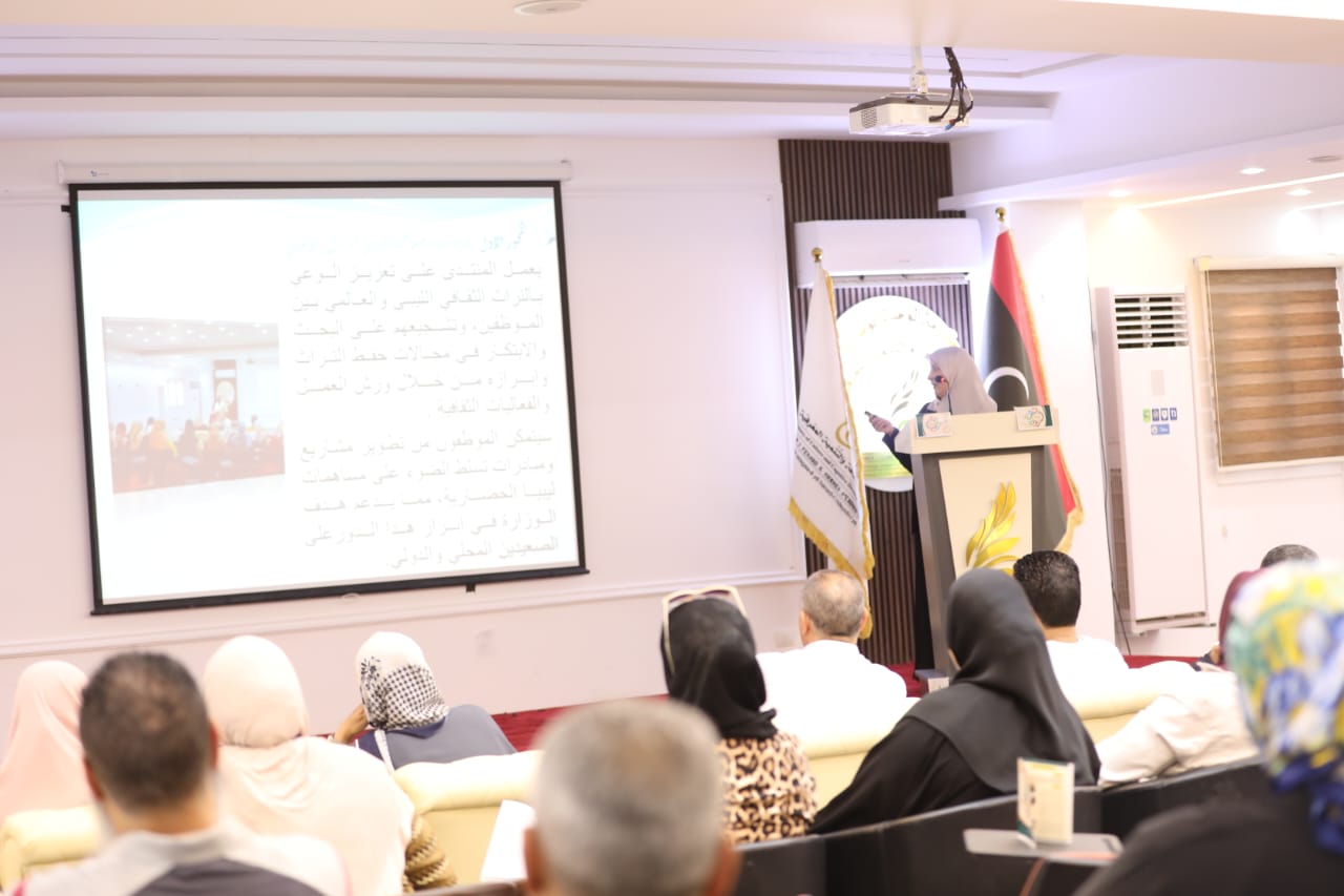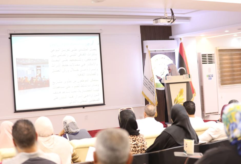 وشهدت الفعالية أيضًا عرضًا مرئيًا تناول محطات تأسيس المنتدى والدعم الذي حظي به من معالي وزيرة الثقافة والتنمية المعرفية الأستاذة مبروكة توغي، التي أولت اهتمامًا خاصاً بالمبادرات الرامية إلى تطوير بيئة العمل الثقافي داخل الوزارة.