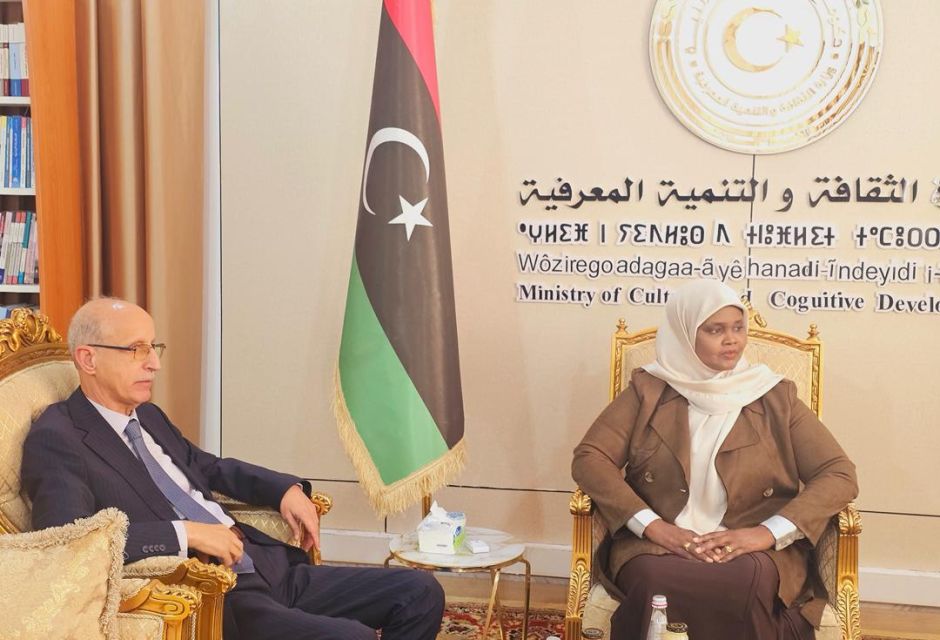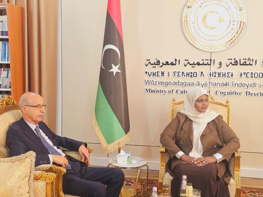 التقت الأستاذة مبروكة توغي، وزيرة الثقافة والتنمية المعرفية، اليوم الأحد 8 فبراير 2026، بمكتبها في ديوان الوزارة، الدكتور خالد عون، رئيس جامعة طرابلس، بحضور الأستاذ إسماعيل القروي، لبحث سُبل التعاون بين الوزارة والجامعة، في مجالات الثقافة والفنون وذلك في إطار الاتفاقية المبرمة بين الطرفين، والتي تهدف إلى دعم المبادرات الثقافية والبحثية المشتركة.