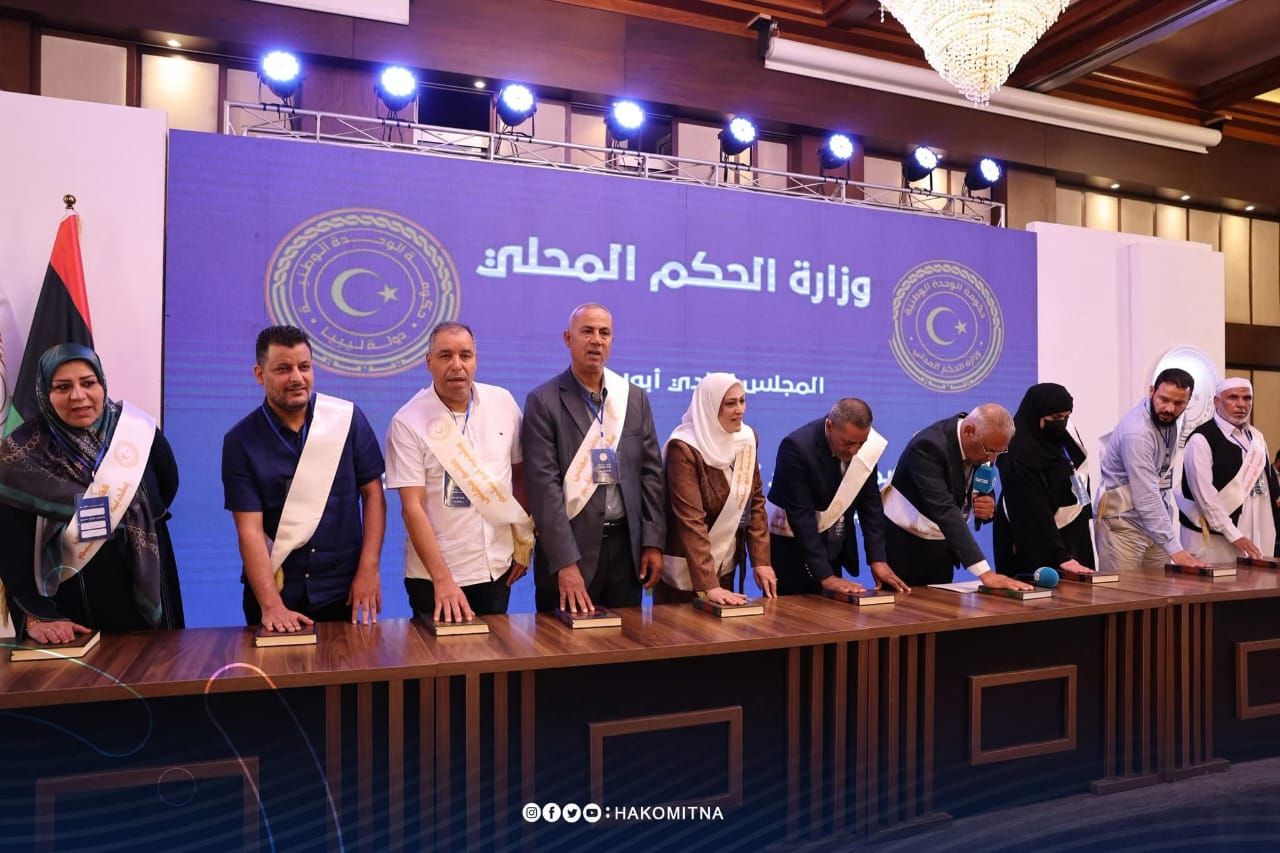 شاركت معالي وزيرة الثقافة والتنمية المعرفية، الأستاذة مبروكة توغي، صباح اليوم الخميس 25 سبتمبر، في الفعالية الوطنية التي شهدت أداء 298 عضواً منتخبا حديثاً من 35 مجلساً بلدياً لليمين القانونية أمام رئيس الوزراء، المهندس عبدالحميد الدبيبة، احتفالاً بالمرحلة الثانية من الانتخابات البلدية الأخيرة.