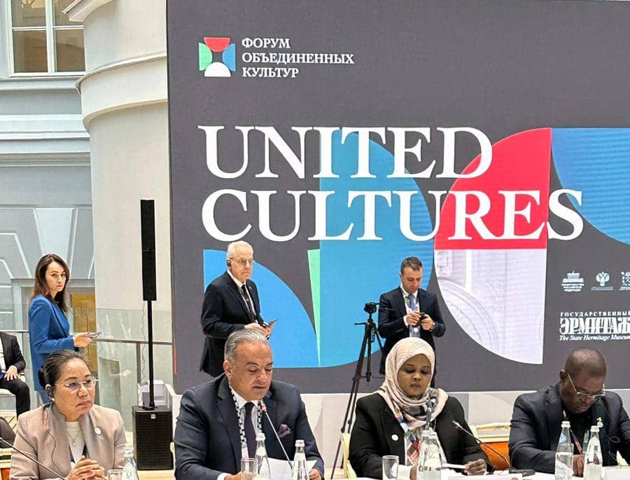 شاركت معالي وزيرة الثقافة والتنمية المعرفية الأستاذة مبروكة توغي، في الجلسة الافتتاحية الرفيعة المستوي في منتدى سانت بطرسبرغ الثقافي الدولي التاسع «منتديات الثقافات المتحدة»، المقام في مدينة سانت بطرسبرغ بروسيا الاتحادية، والتي حملت عنوان ” السيادة الثقافة كأساس لهوية الدولة “، بمشاركة 30 وزيرا للثقافة، ومسؤولين ورؤساء منظمات دولية وقادة لمؤسسات ثقافية كبرى، إلى جانب شخصيات عامة وخبراء بارزين في مجال التعاون الثقافي الدولي من 70 دولة