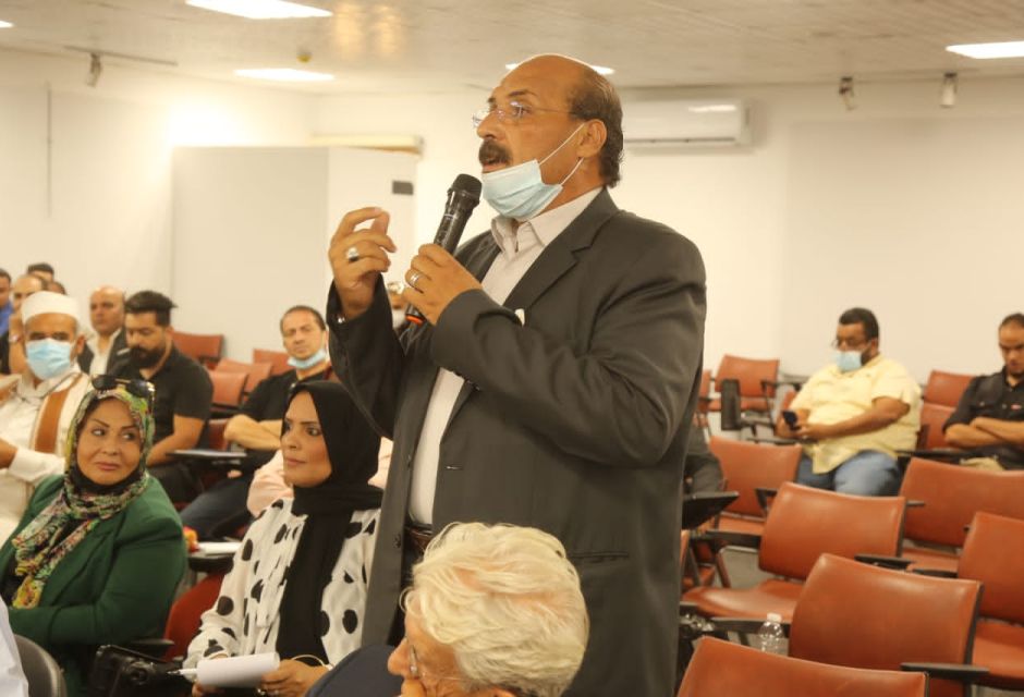 وقبل أن يفتح باب النقاش والحوار والإستماع للفنّانين ثمّنت معالي الوزيرة كل الجهود التي بذلت والتي تبذل للرقي بالفن الليبي قائلة لهم ” بفضلكم تُعلى الأمم والوطن ” .