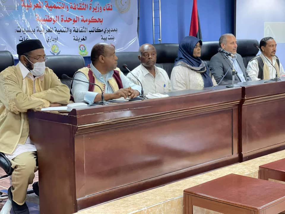 وعقدت وزيرة الثقافة اجتماعا موسعا مع البلديات الثلاث، لبحث الصعوبات والمشاكل التي تواجه قطاع الثقافة بالبلديات، عقبها زيارة للمركز الثقافي ببلدية أوباري.