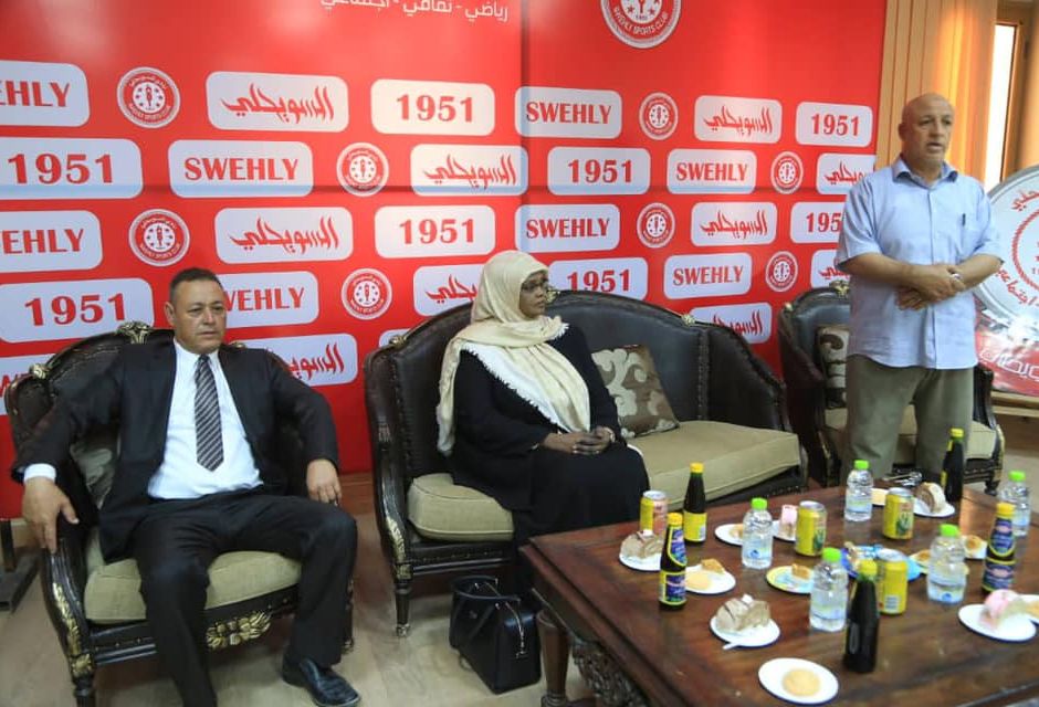 وكان في استقبال الوزيرة؛ رئيس مجلس إدارة نادي السويحلي وأعضاء المجلس ورابطة مشجعي النادي.