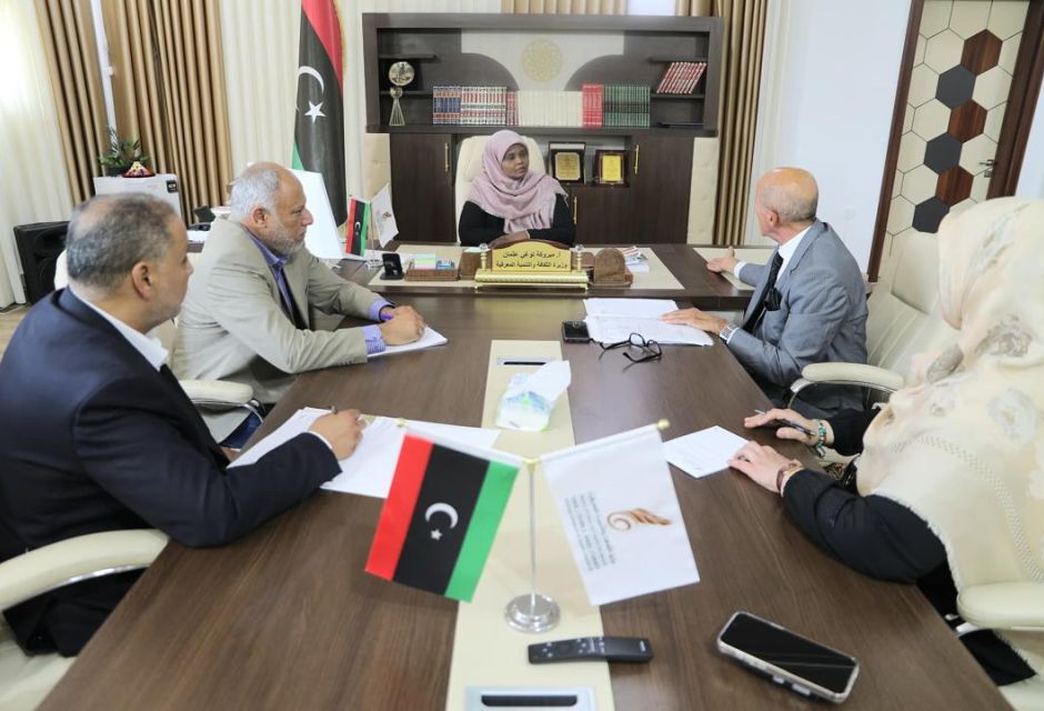 عقدت معالي وزير الثقافة والتنمية المعرفية، الأستاذة مبروكة توغي، صباح الثلاثاء الموافق 1 يوليو، اجتماعاً بمكتبها بديوان الوزارة للوقوف على سير تنفيذ الاتفاقية المبرمة مع وزارة التربية و التعليم ، وتحديداً على الجانب المتعلق بالكتاب المدرسي، نظراً للأهمية الكبيرة التي يحتلها هذا الموضوع وارتباطه ببناء أجيال المستقبل التي يعول عليها في بناء ليبيا.