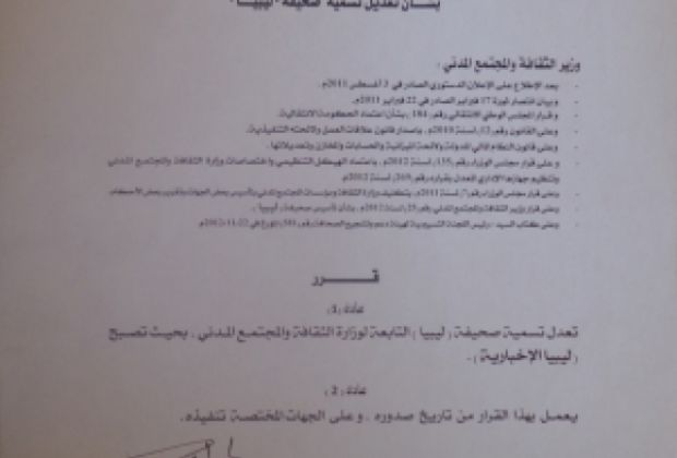 تعديل اسم صحيفة ليبيا