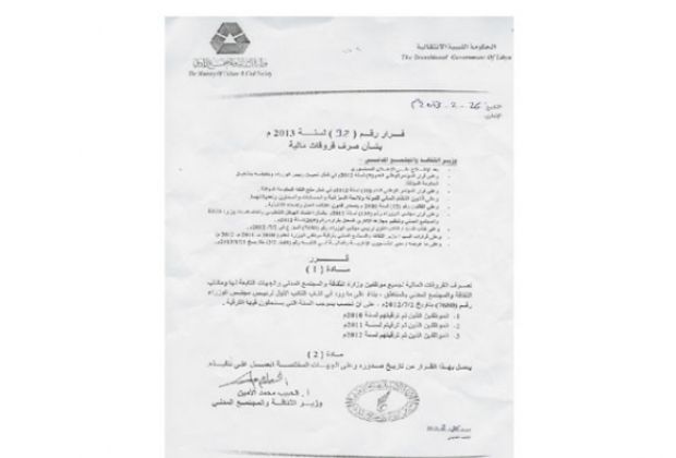 صرف الفروقات المالية للعاملين بوزارة الثقافة والمجتمع المدني