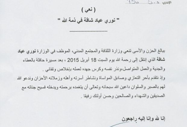 وزارة الثقافة تنعي الفنان ” فتحي العريبي “