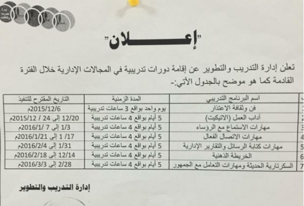 الدورات التدريبية التي ستقيمها ادارة التدريب والتطوير بديوا…