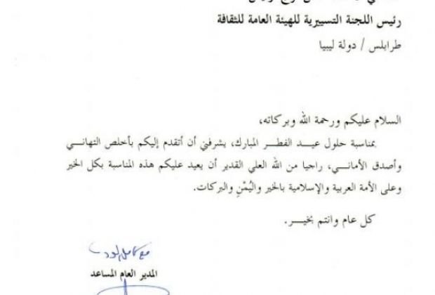 معايدات للسيد رئيس اللجنة التسيرية بالهيئة العامة للثقافة .