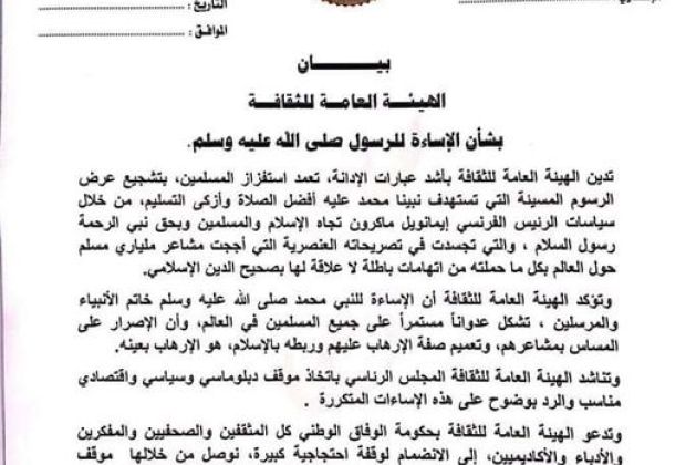 بيان الهيئة العامة للثقافة بشأن الإساءة للنبي صلى الله عليه…