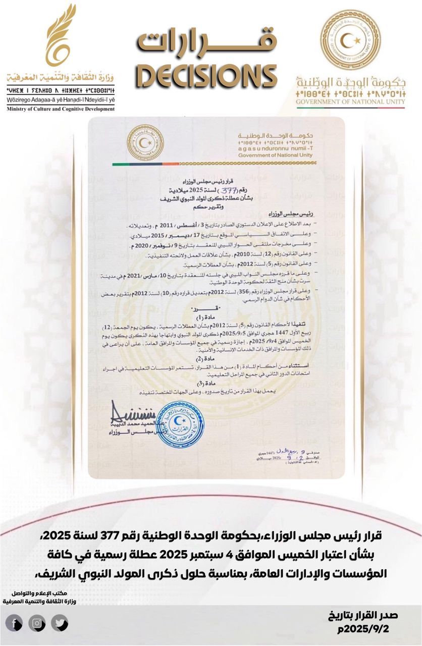 شاركت معالي وزيرة الثقافة والتنمية المعرفية، الأستاذة مبروكة توغي، في فعاليات الدورة الاولى من قمة الثقافة والتراث والفنون والدبلوماسية والابتكار (CHANDI 2025) التي استضافتها مدينة بالي بجمهورية إندونيسيا، خلال الفترة من 3 إلى 5 من سبتمبر الجاري، تحت شعار «الثقافة من اجل المستقبل».